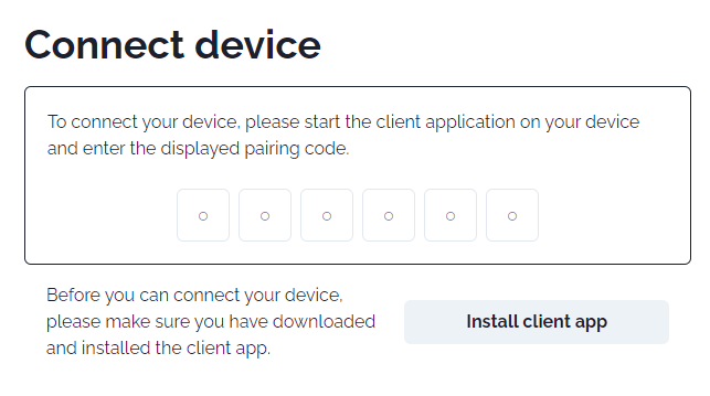To pair your device, simply go back on the PC, from your favorite browser go to Portal web platform (https://[orgname].innoactive.io/connect-hmd) and enter the six digit code.