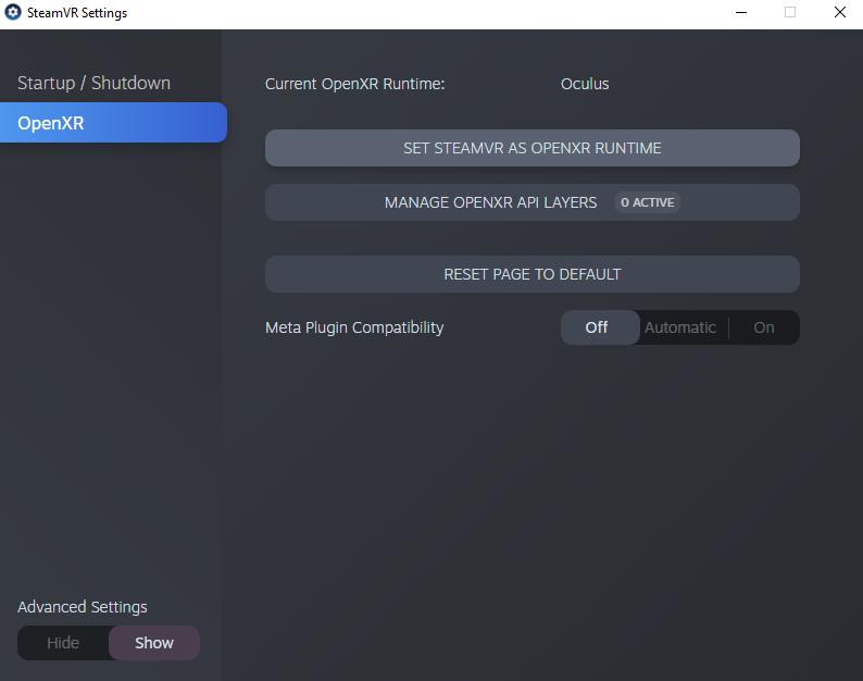 Open SteamVR > Settings > OpenXR > Set SteamVR as OpenXR runtime